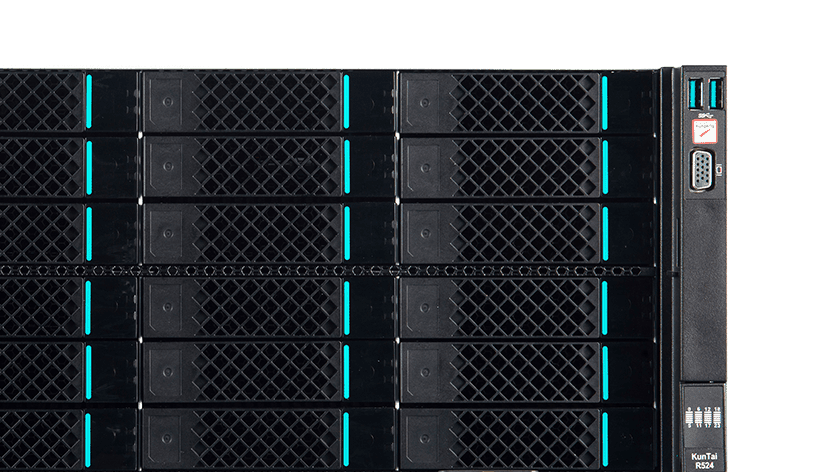 KunTai R524 存储型服务器是NG大舞台数码基于鲲鹏处理器推出的新一代 ARM数据中心服务器。。。主要面向存储业务,,,,具有海量存储、、高性能、、低功耗以及易扩展的特点,,,,适合为大数据分析、、、软件定义存 储等应用场景的工作负载进行髙效加速。。。。